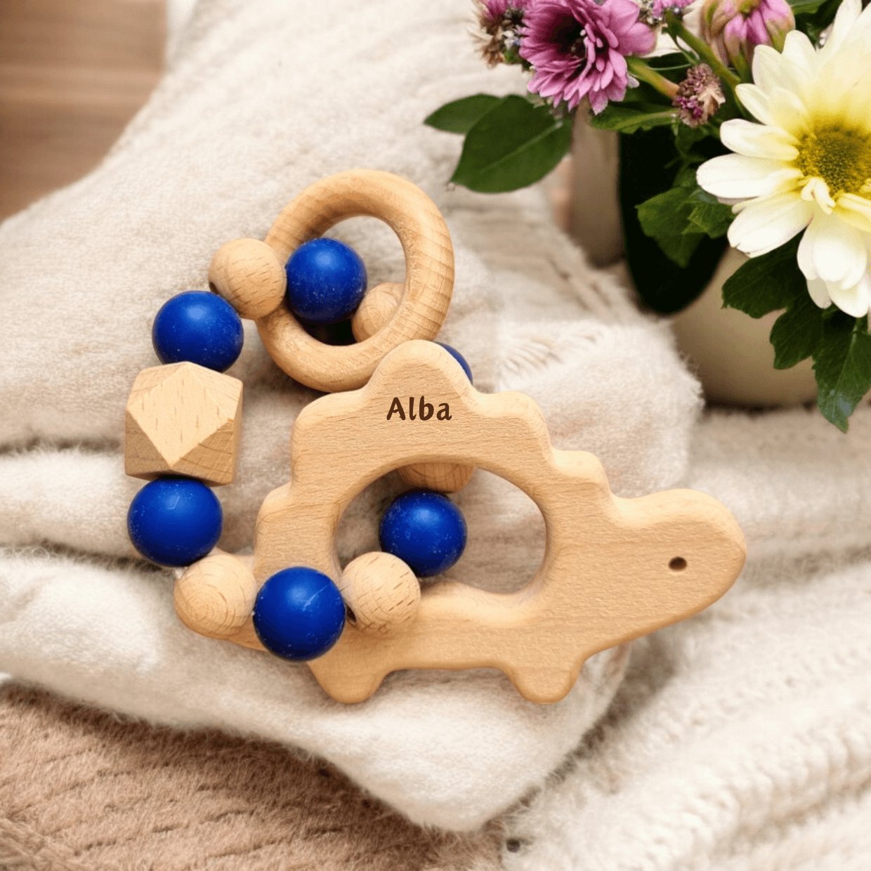 Utilisable dès les premières gencives sensibles, durable jusqu'aux dernières molaires. C'est l'un de ces rares objets de bébé qui reste vraiment utile longtemps. Et contrairement aux anneaux de dentition en plastique, celui-ci ne finira pas collant et jauni au bout d'un mois.