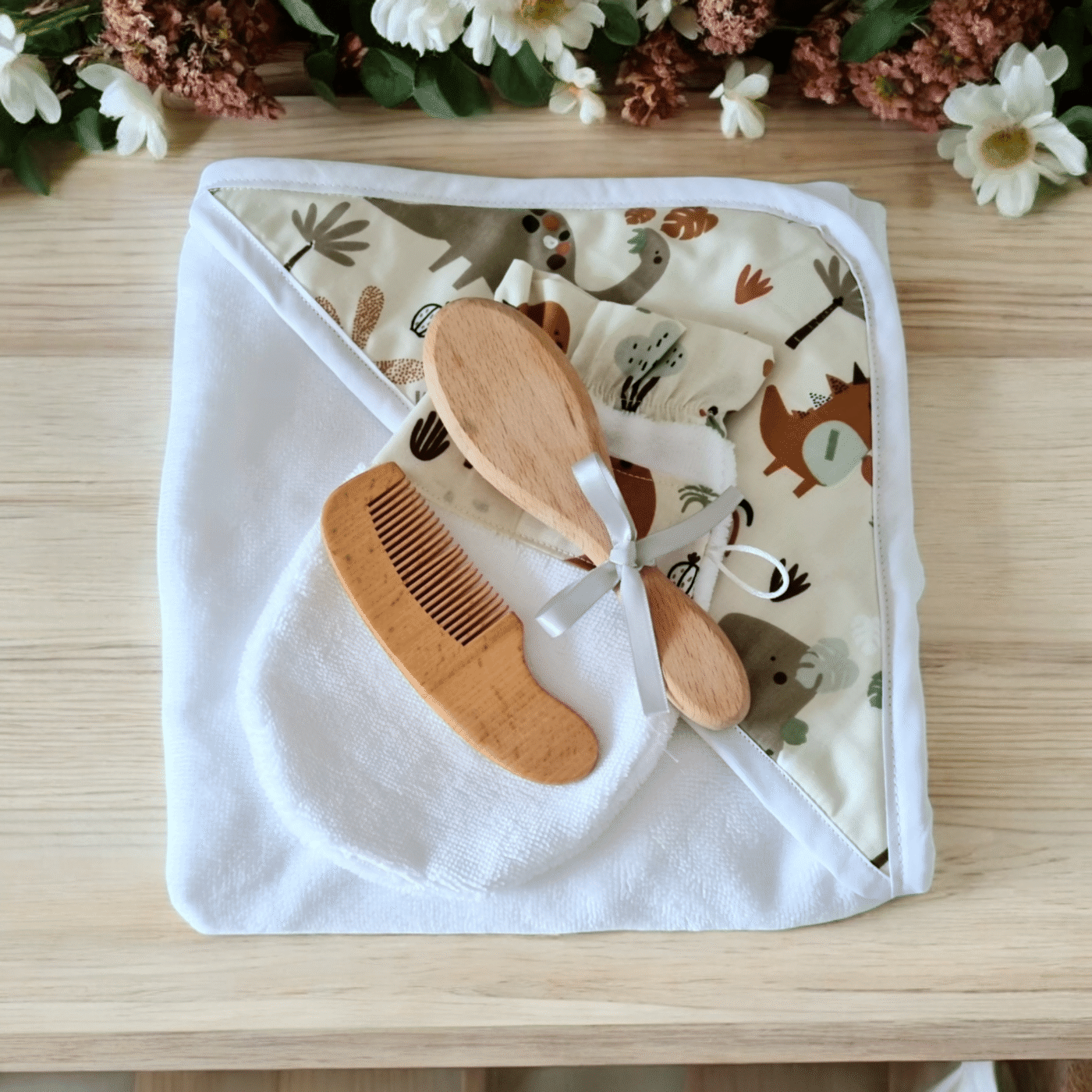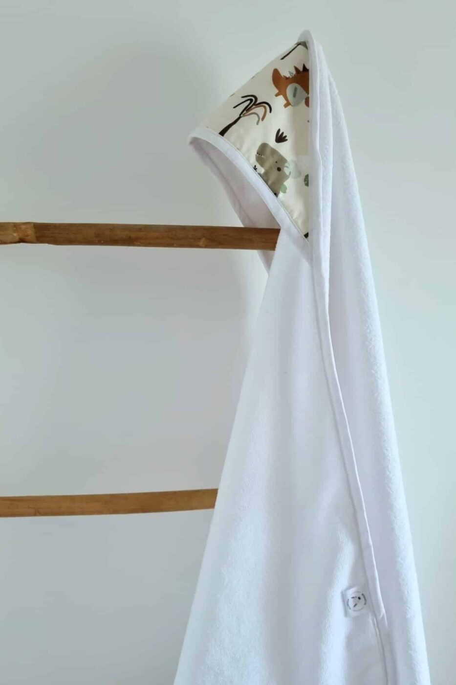 Une crête de dinosaure sur la capuche, et bébé se transforme en petit dino à la sortie du bain. C'est le moment de magie que les enfants réclament : pas seulement se sécher, mais devenir quelqu'un d'autre pendant trois minutes. L'éponge de bambou bio est ultra-douce, absorbante, naturellement antibactérienne. La capuche tient bien en place, la crête ne tombe pas, même quand bébé court dans le couloir en rugissant.