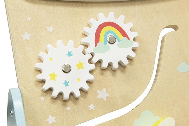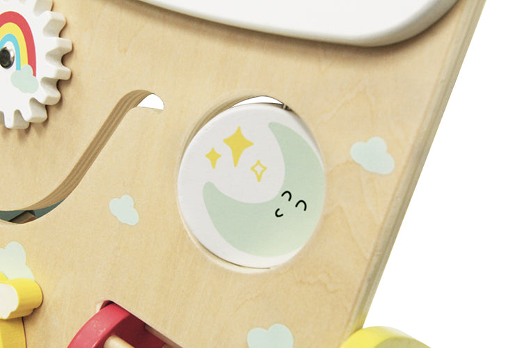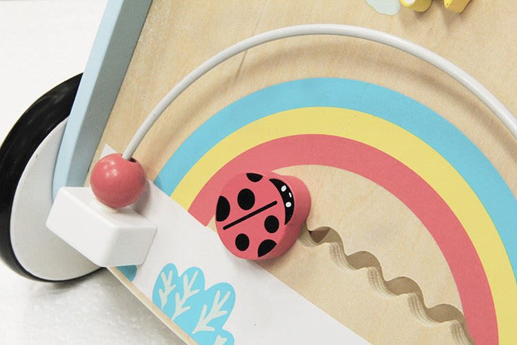 | Activités | Engrenages, labyrinthe, boulier, rouleau sonore, coccinelle mobile, tri de formes |