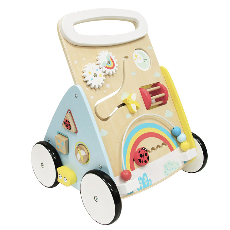 L'intérieur du chariot est un coffre de rangement. Bébé peut y mettre ses jouets, ses peluches, ses trésors du moment, et les transporter d'une pièce à l'autre. C'est le premier déménagement de sa vie, et il adore ça.