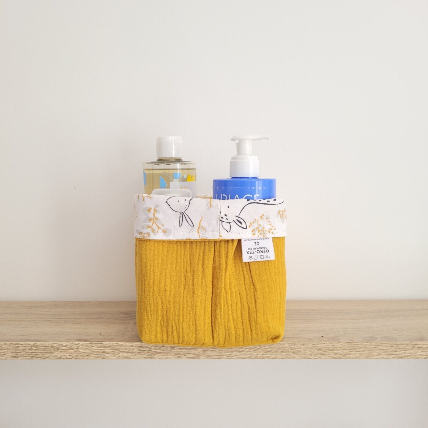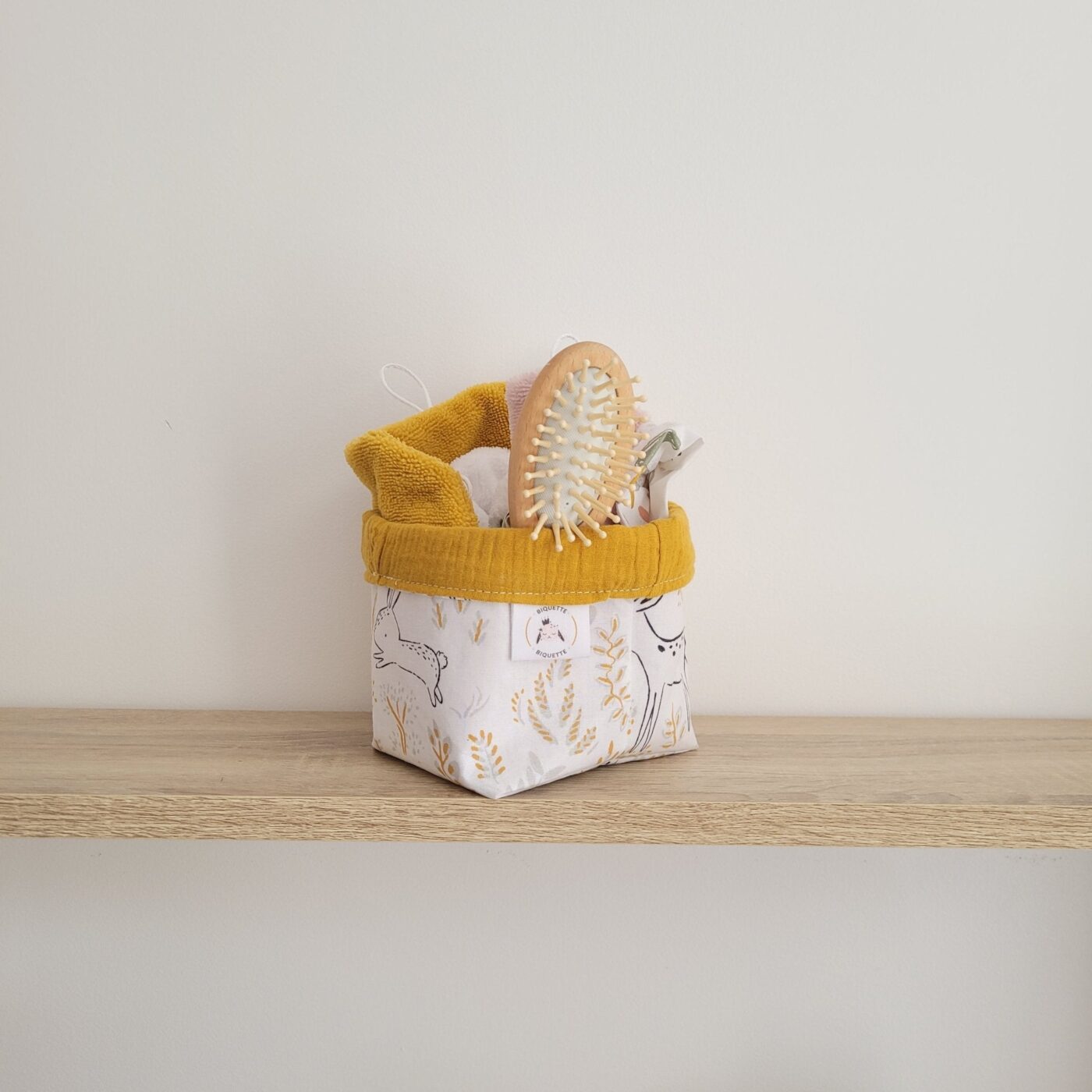 Pourquoi la table à langer devrait-elle être un endroit chaotique ? Ces paniers disent : on a du goût, même à 7h du matin. Les biches sont gracieuses, le fond apaisant. C'est du rangement qui ne fait pas honte quand les invités visitent la chambre de bébé.