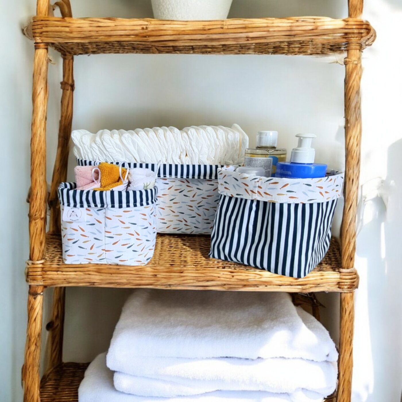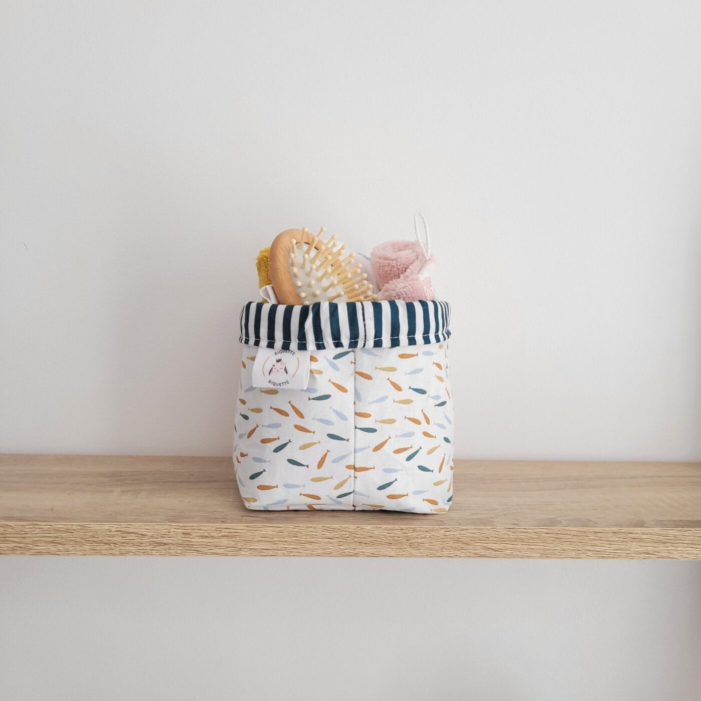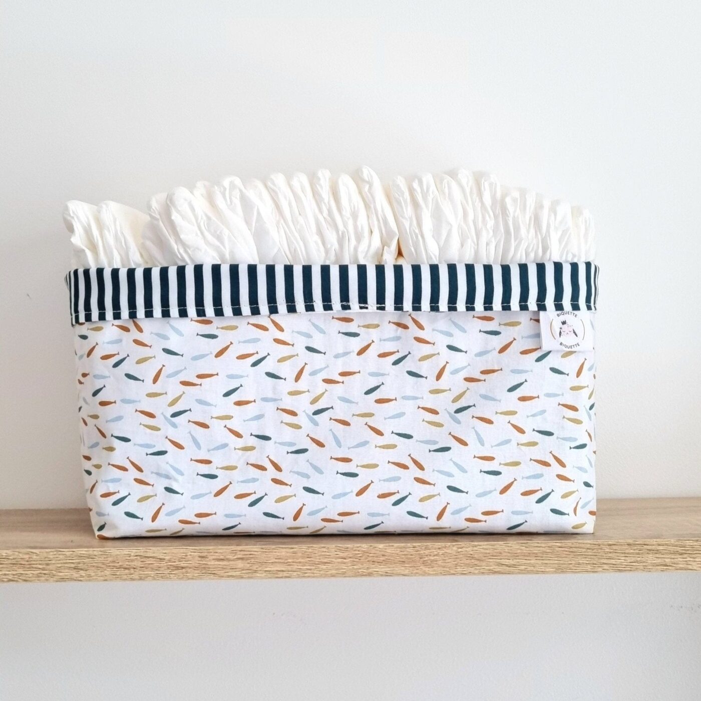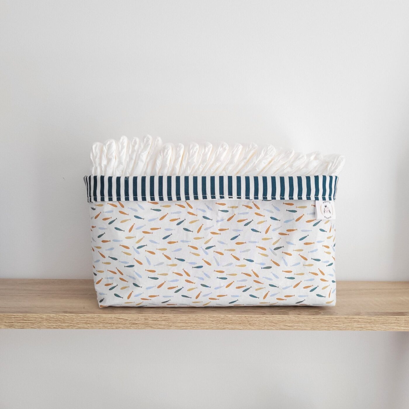 Les poissons apportent une touche de couleur sans crier. C'est du rangement qu'on laisse en vue, pas besoin de l'enfermer dans une armoire. Et quand bébé grandit et que les couches sont terminées, les paniers restent parfaits pour des jouets, des livres, ou des chaussettes qui ne retrouvent jamais leur paire.